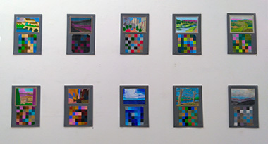 サンジミアーノの風景画から10色選び置換構成した彫刻。