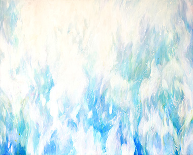 作品のモチーフは海の白波をもとにしています。 まとわりつく白い波を漫然と浴びながら、 白波を掻き分けその先に、澄み切った真っ白な境地へ至るべく、 画面に向かっています。
